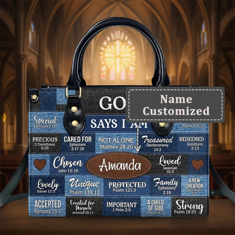 At the center, your name is beautifully highlighted, making the handbag a one-of-a-kind statement of faith and individuality. Just as Scripture calls each believer by name, this design reflects your personal walk with God, blending style with spiritual affirmation. -