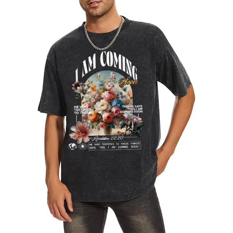 Christianartworkshop I Am Coming Soon Unisex Washed T-Shirt