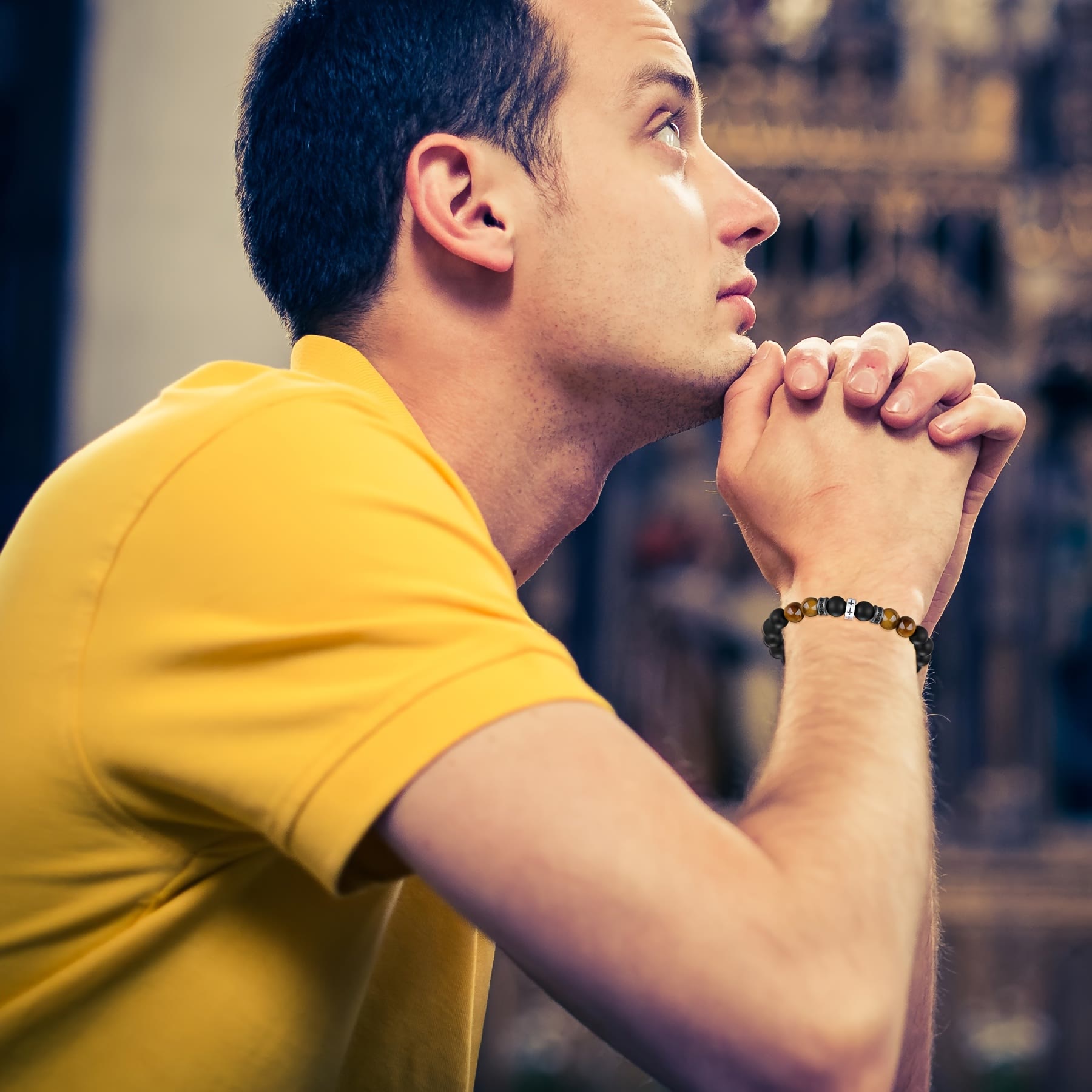 The cross represents faith and devotion. Tiger's eye brings willpower and protection, while black onyx offers strength and shields against negativity — all echoing the verse “Be STRONG and COURAGEOUS”. -