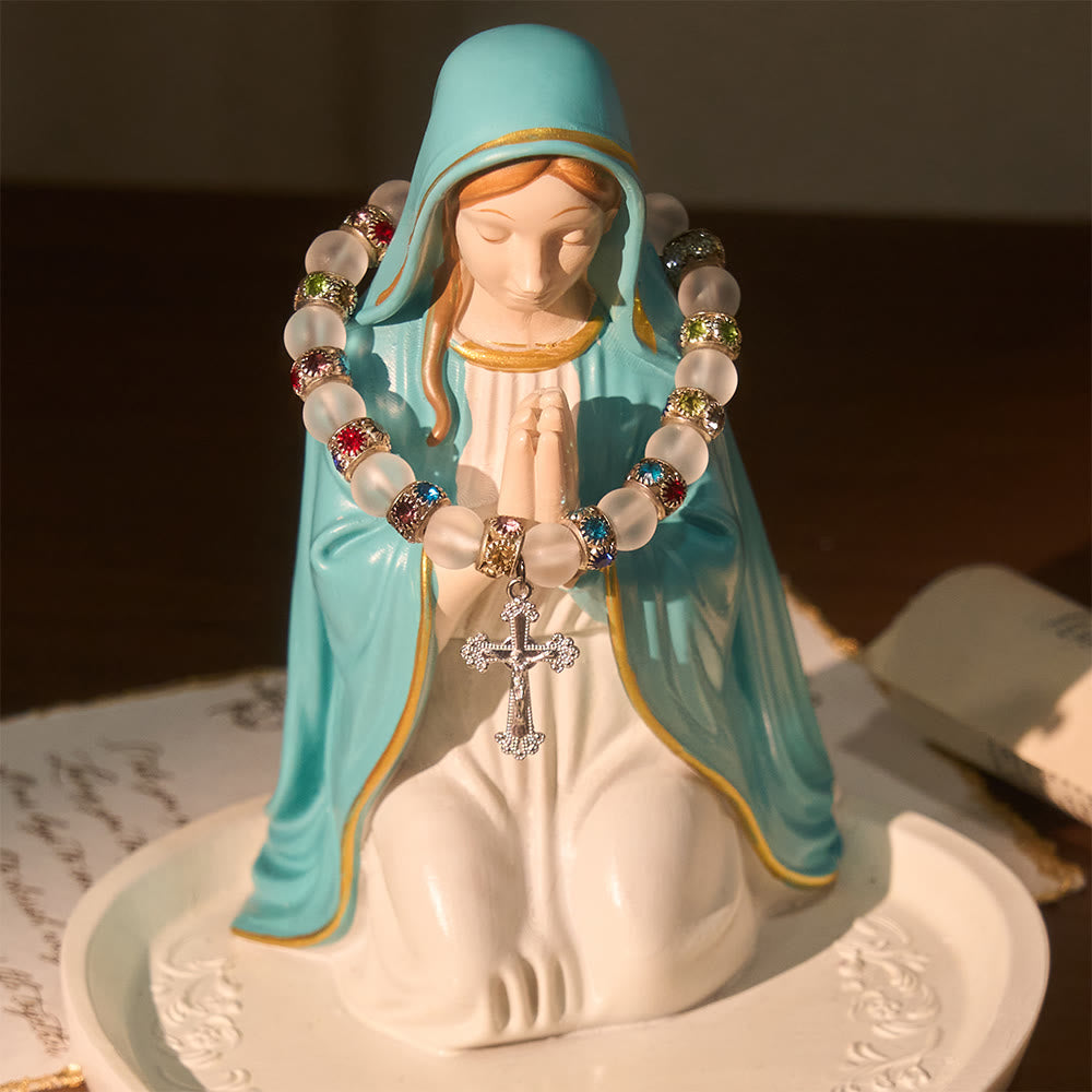Let this bracelet be your gentle spiritual companion: wear it daily, and the frosted beads’ soft finish will remind you of faith’s quiet, unfolding journey. The cross pendant ties each glance (or gentle brush) to His enduring love, turning ordinary moments into connections to His steady care.