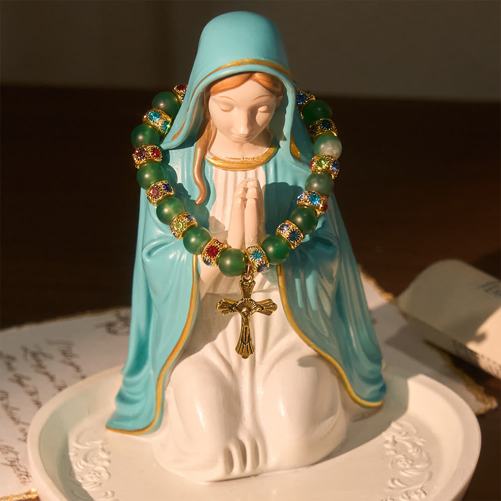 This Frosted Bead Cross Bracelet wraps devotion in soft, luminous charm. Its smooth frosted green agate and white glass beads pair with a detailed cross pendant—anchoring every daily touch to His grace and the quiet, steady warmth of rooted faith.