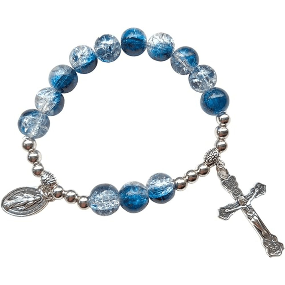 Christianartworkshop Miraculous Medallion & Crucifix Two-Tone Glass Bracelet - Ocean - image 2