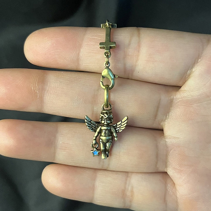 Retro Style Bronze Lucky Star Angel & Heart Cross Bracelet