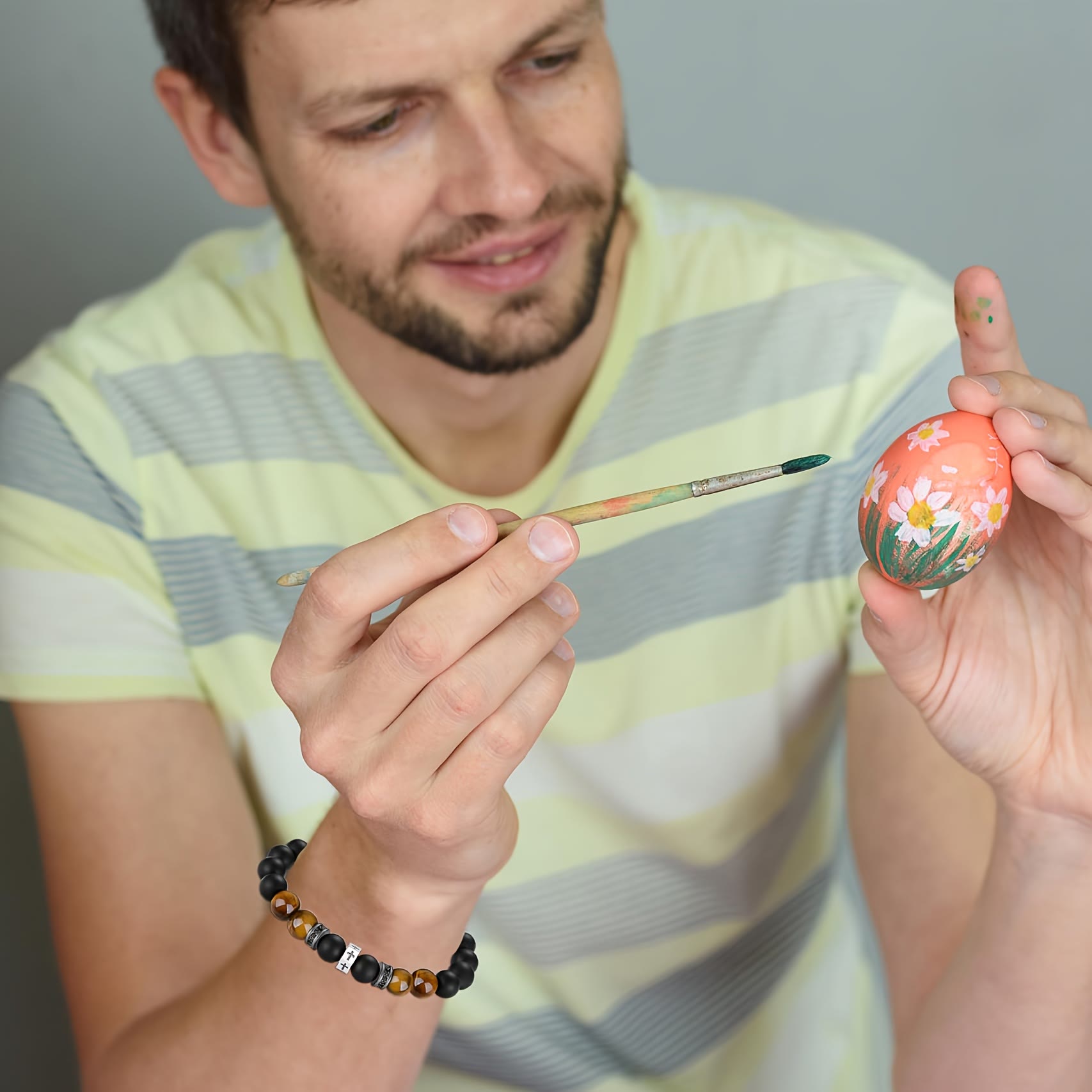 The cross represents faith and devotion. Tiger's eye brings willpower and protection, while black onyx offers strength and shields against negativity — all echoing the verse “Be STRONG and COURAGEOUS”. -