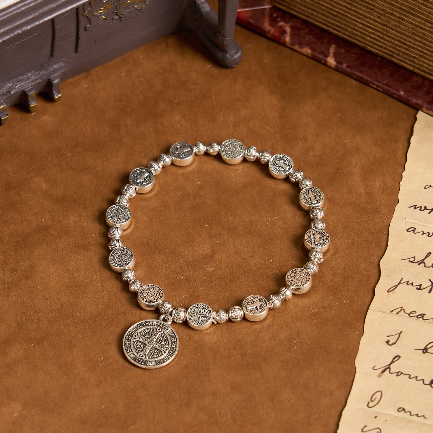 Christianartworkshop St. Benedict Crucifix Rose Bracelet: Timeless Christian Accessory for Daily Faith Expression