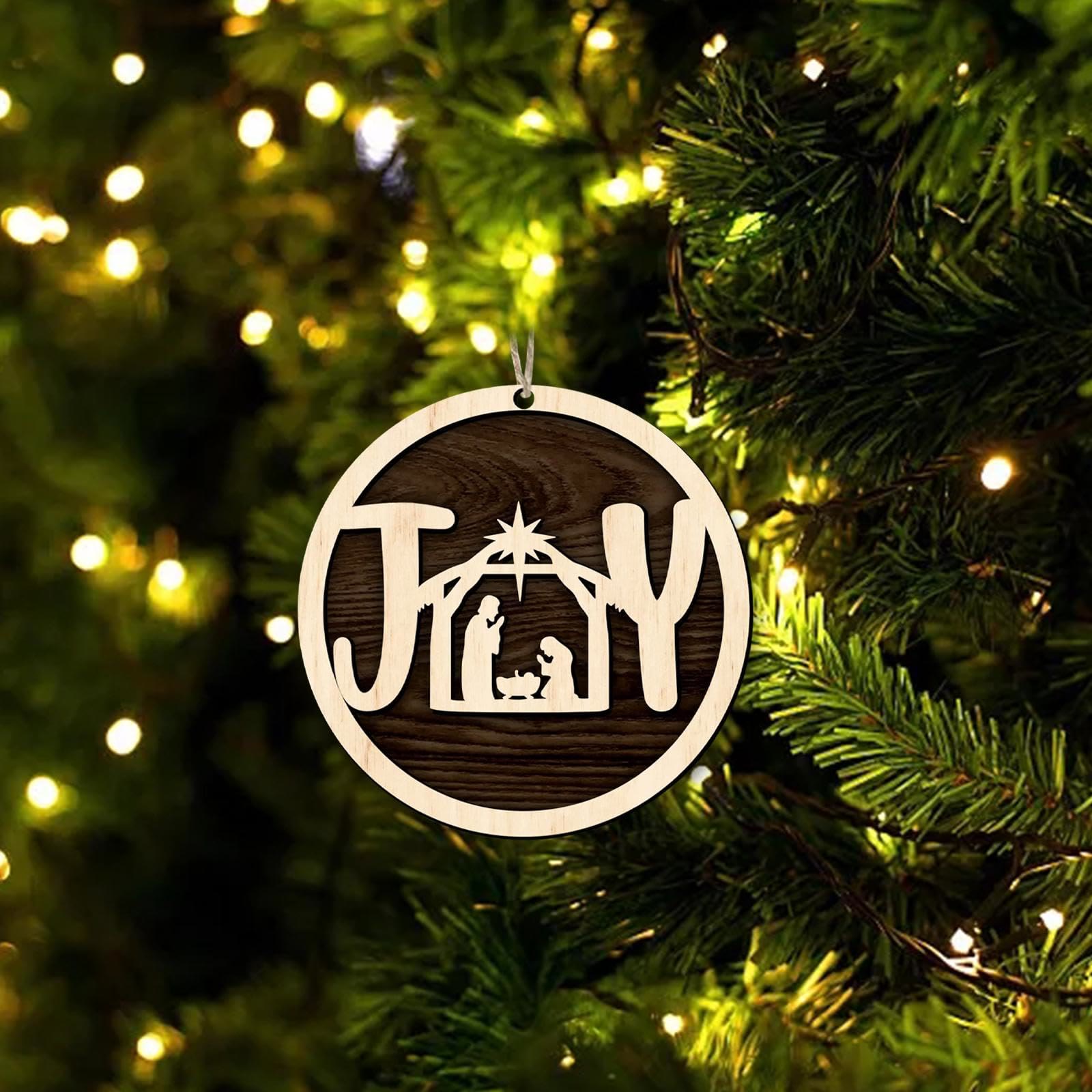 Minimalist Style Wooden Nativity Scene Joy Pendant Christmas Nativity Hanging Ornaments