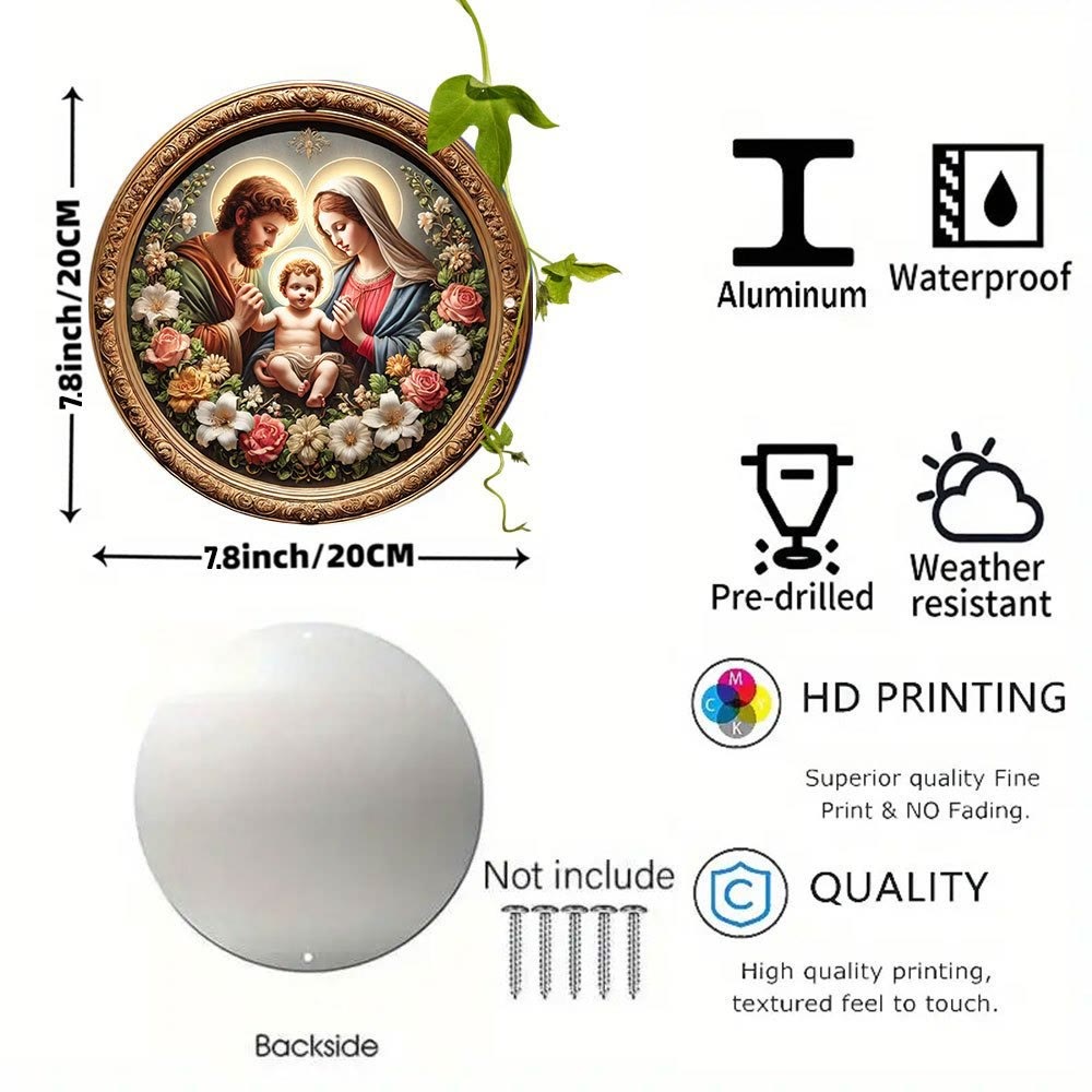 Add a touch of divine grace to your decor. Surrounded by vibrant floral details and framed with ornate golden carvings, this ornament is perfect for adorning walls, shelves, or prayer areas. It serves as a heartfelt reminder of family, faith, and the sacredness of Christian love, deepening your connection to these cherished themes.