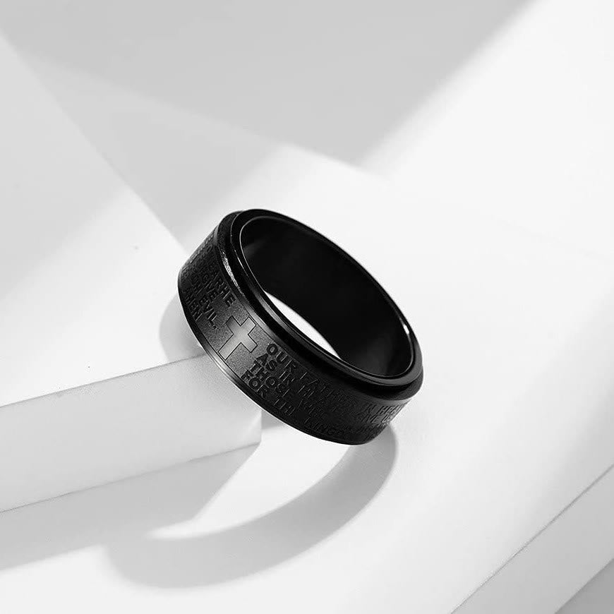Engraved Lord's Prayer: The exterior of the ring is intricately engraved with the entire Lord's Prayer, providing a constant source of spiritual strength and guidance.