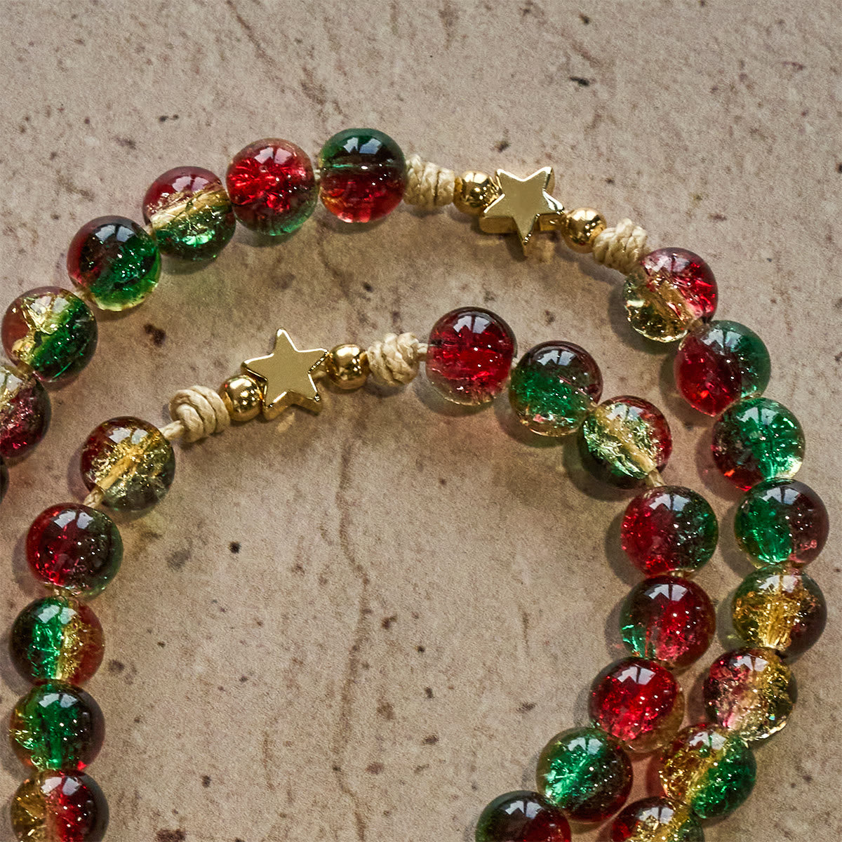 The Christmas glass beads glide effortlessly, inviting calm, focused prayer. Their vibrant hues bring joyful spirit to daily devotion.