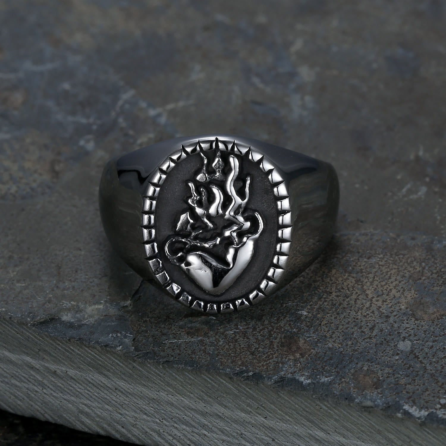 Classic Retro Style Jesus Sacred Heart Engraved Stainless Steel Faith Ring