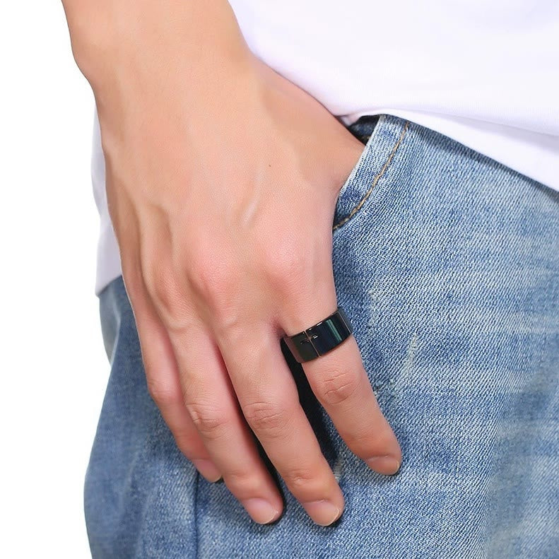 Introducing the "Eternal Faith Open-Work Cross Ring," where modern sophistication meets timeless spiritual symbolism. This extraordinary piece features an open-work cross design meticulously crafted to capture both contemporary style and enduring faith. The sleek black band provides a striking contrast to the symbolic cross, creating a visually captivating and meaningful accessory. -