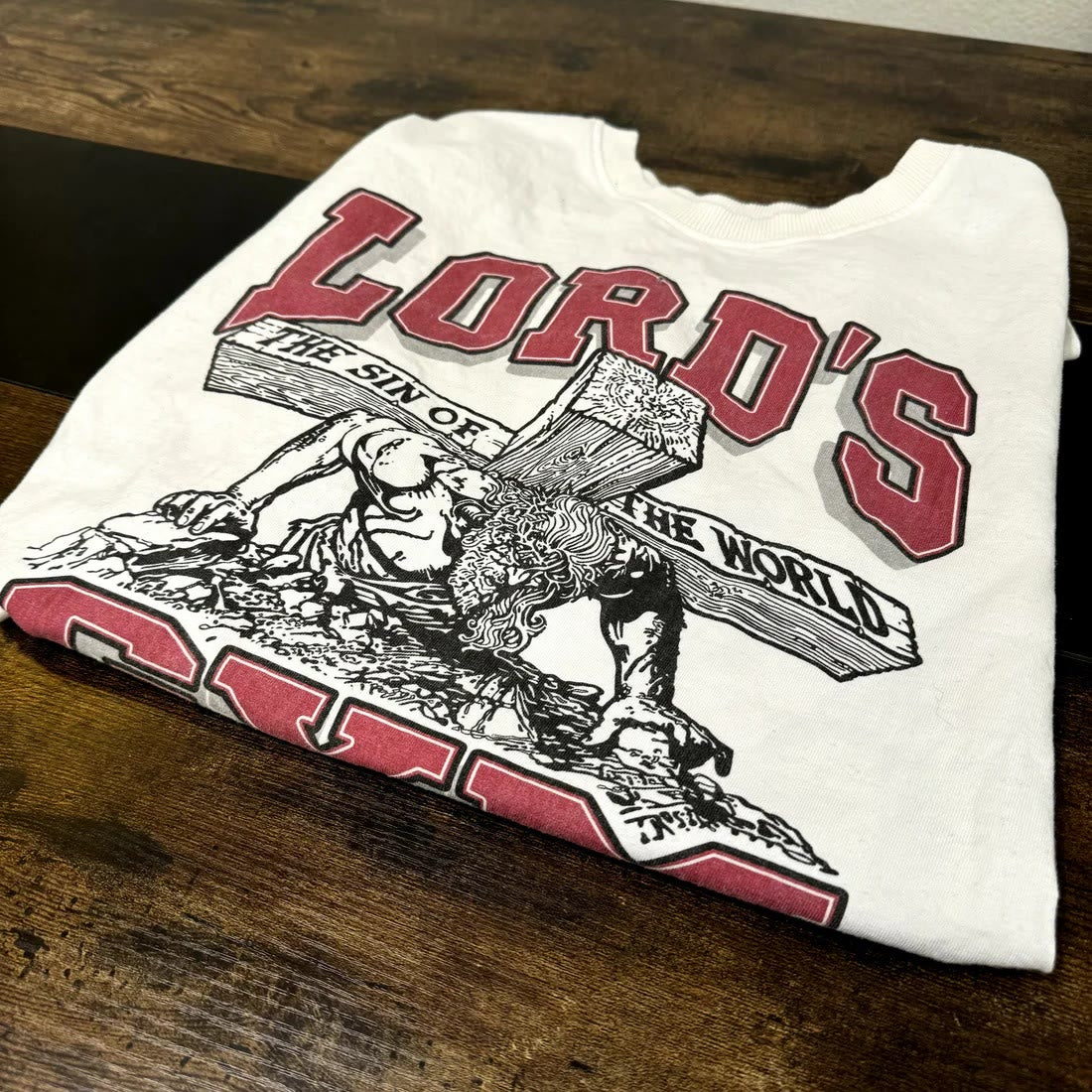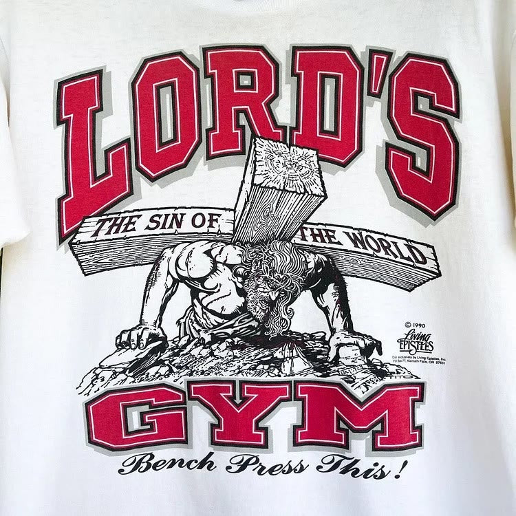 On the back of this T-shirt, the striking capital letters "HIS PAIN YOUR GAIN" are presented, conveying the profound doctrine of Jesus Christ's suffering and redemption. In the pattern below, a heart pierced by a nail further strengthens the image of sacrifice and redemption. Wearing it is not only a pious declaration of faith, but also a reminder to ourselves that because of Christ's suffering, we can gain redemption and rebirth, and always remember this sacred grace in our daily lives.