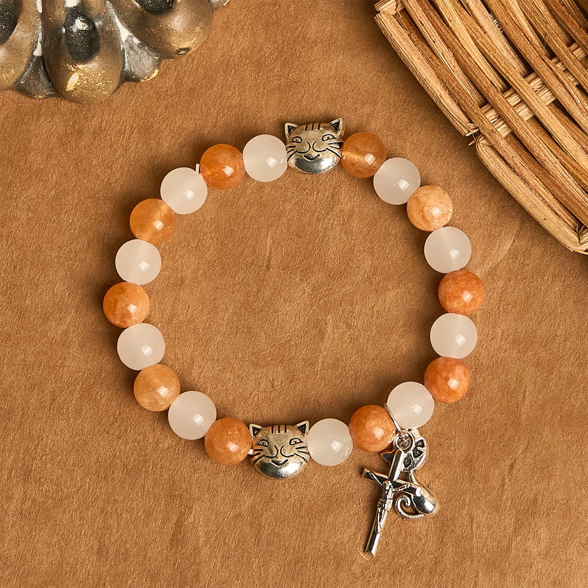 Inspired by the gentle spirit of the orange tabby, the rosary pairs radiant quartz beads with playful feline motifs, creating a prayer tool that is both classic in structure and innovative in expression. -