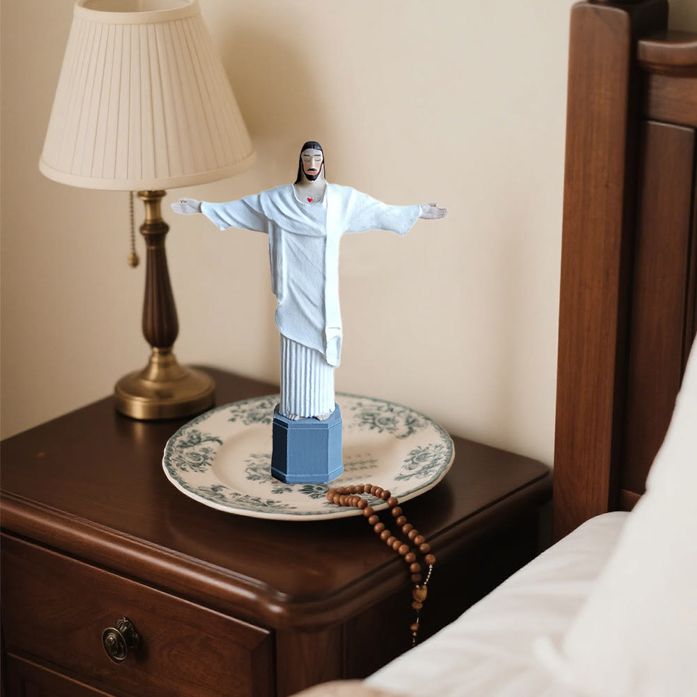 The pose recalls the world-famous Christ the Redeemer statue, radiating peace and strength. Whether at work, in study, or at home, His open arms assure you that you are always welcomed and never alone.