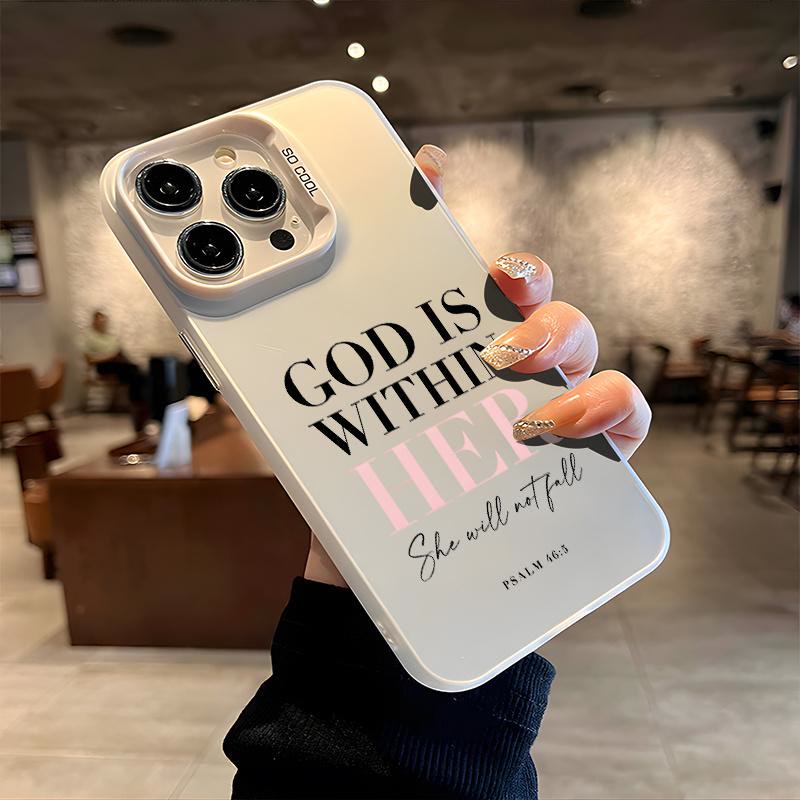 This phone case features the empowering verse “GOD IS WITHIN HER, She will not fall” from Psalm 46:5 — a timeless emblem of divine protection and unwavering faith. -