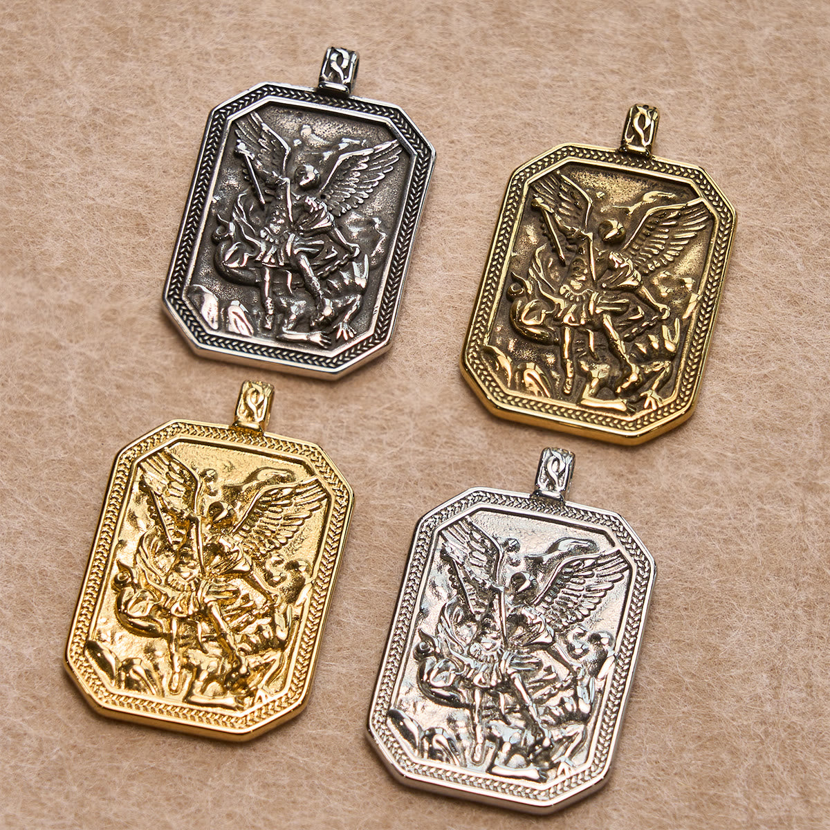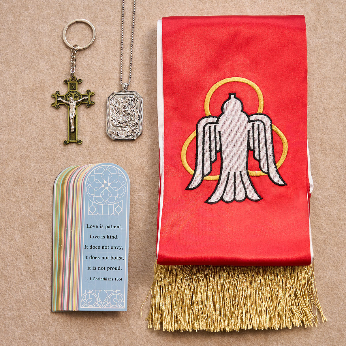 This thoughtfully curated set gathers four sacred signs—St. Michael’s guardianship, the saving cross, the fire of the Holy Spirit, and the way of charity—so pocket prayer, daily courage, and quiet reflection travel with you. -