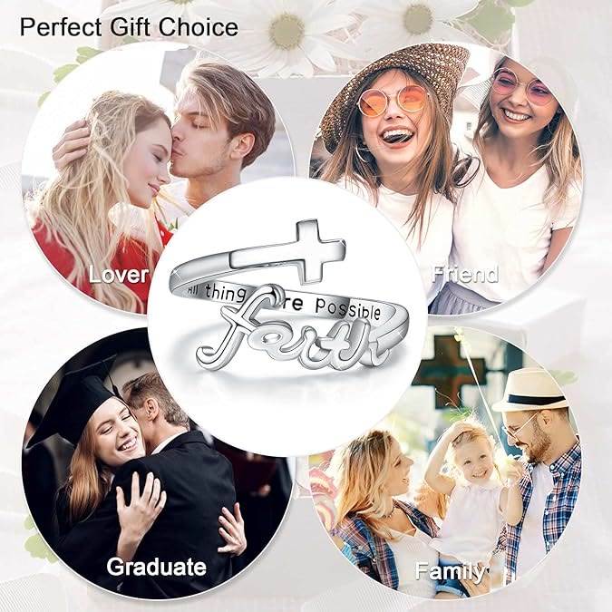 This open band turns daily wear into a faith-filled reminder—stylish "faith" lettering, a cross, and "All things are Possible" inscription inspire belief. Unisex, available in silver, gold, rose gold, fitting everyday and spiritual moments. -