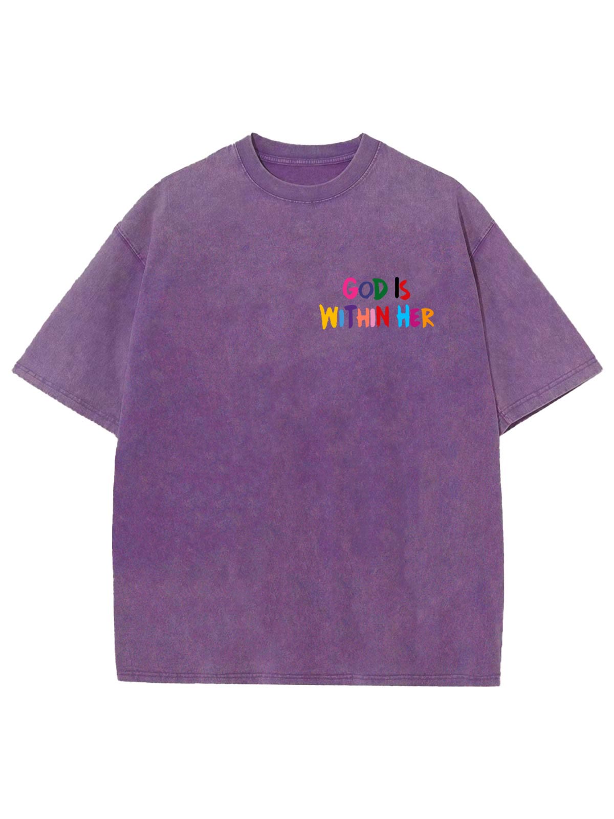 Christianartworkshop God Is Within Her She Will Not Fall Unisex Washed T-shirt