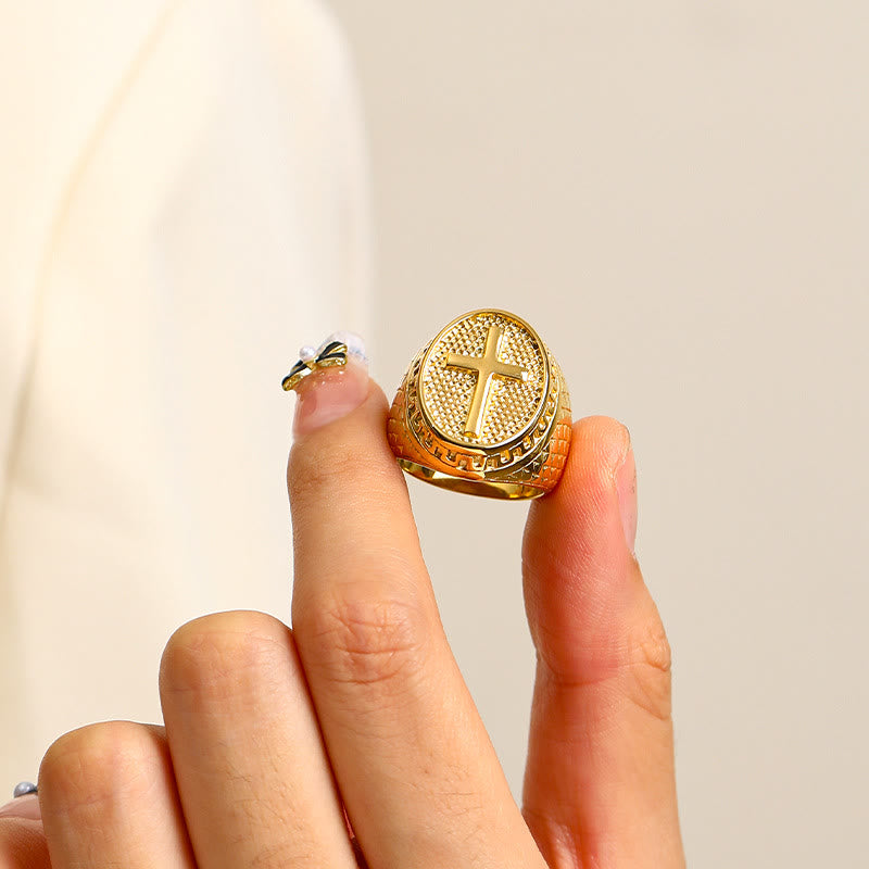 Timeless Symbolism: The cross, prominently displayed on the face of the ring, represents sacrifice, redemption, and divine love. This enduring symbol is a profound statement of religious faith and spiritual strength, making it a cherished piece for believers.