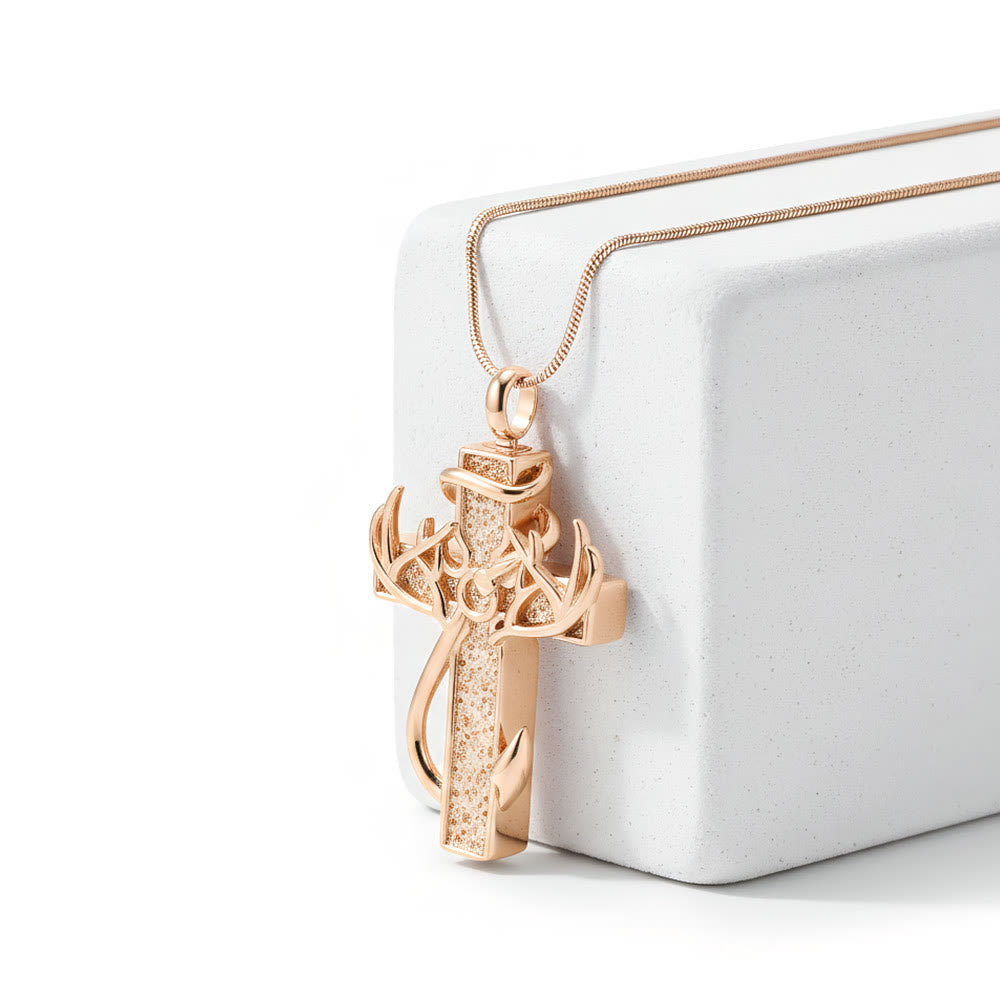 Featuring a cross integrated with antler and fishing hook motifs, this necklace radiates hunting-fishing faith and spiritual devotion — inviting reflection on outdoor pursuits and divine connection in everyday life. -