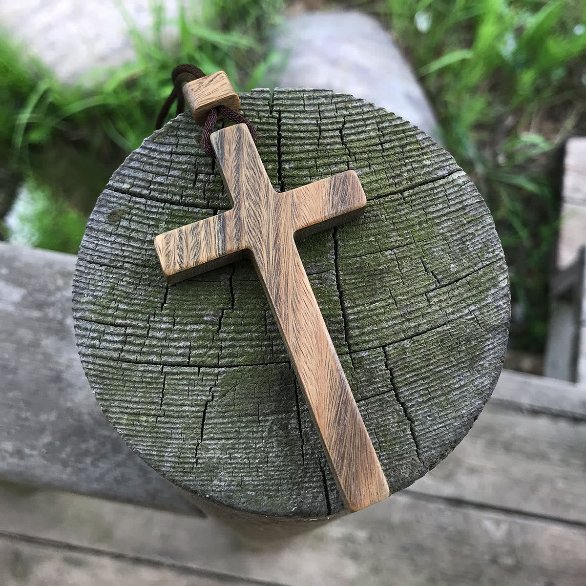 Carved from red or green sandalwood, this simple cross pendant celebrates natural grain and honest craft. Smooth, rounded edges and a sealed finish bring out the wood’s texture while keeping the piece durable for daily wear.
