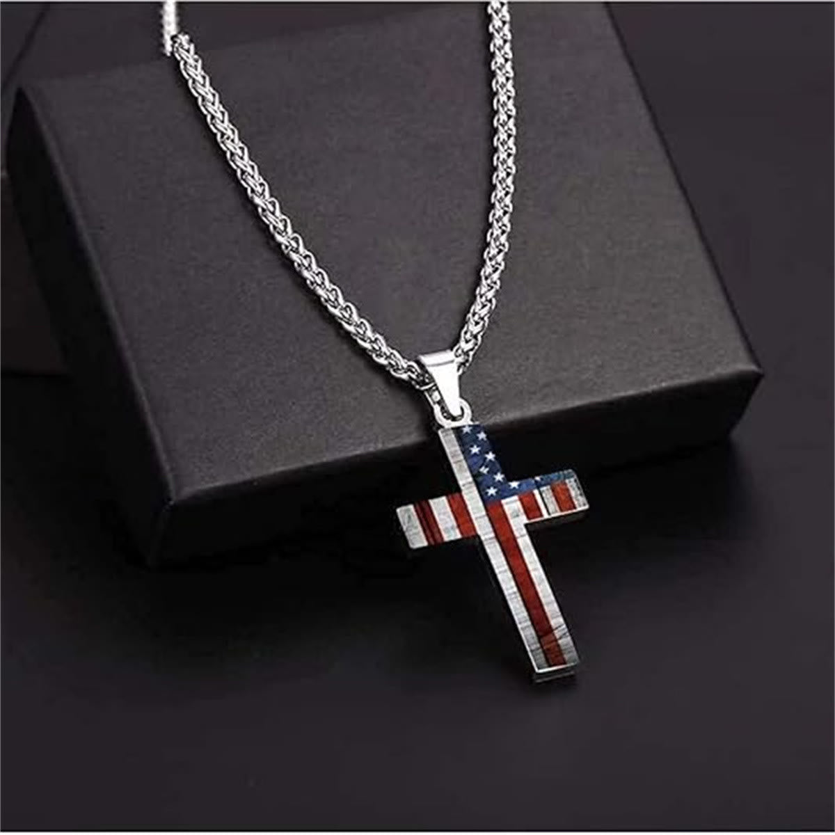 This cross necklace features a bold, structured silhouette with an inlaid American flag motif — uniting the strength of the cross with a symbol of commitment, sacrifice, and calling. Its clean lines and solid form offer a quiet yet powerful expression of faith for everyday wear. -