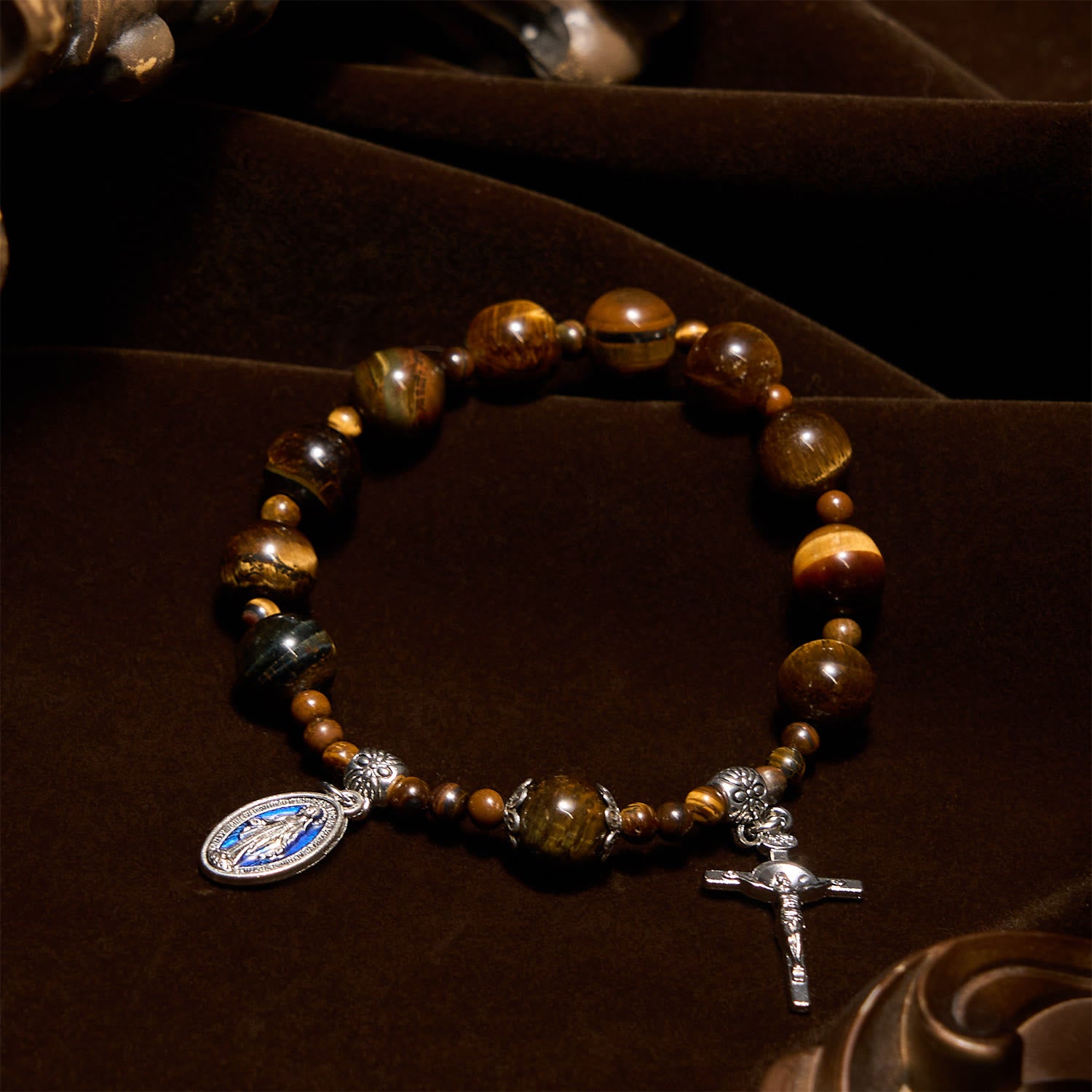 10mm Yellow Tiger's Eye Stone One Decade Rosary Bracelet