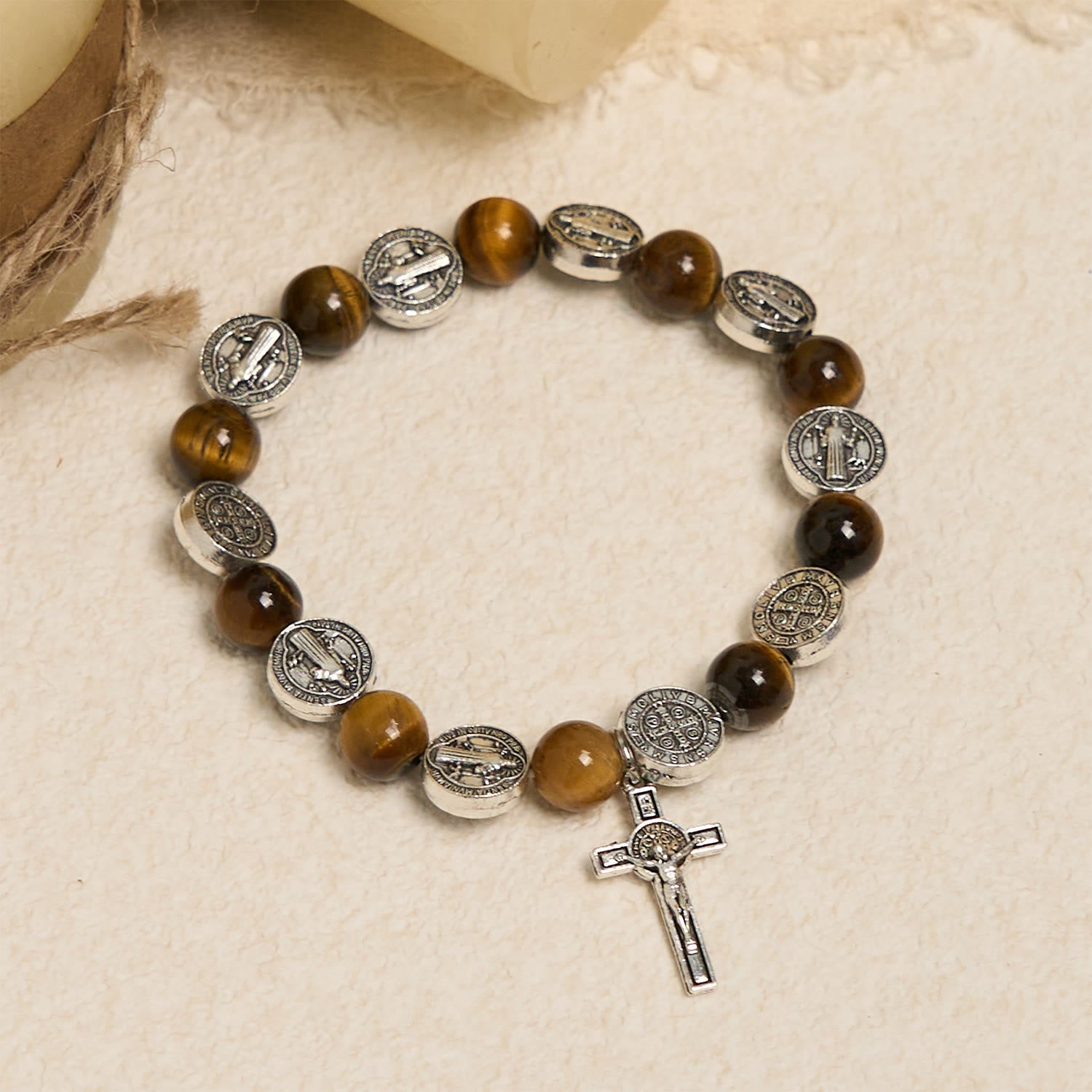 St. Benedict Symbol Tiger's Eye Bracelet: A Blend of Faith and Beauty
