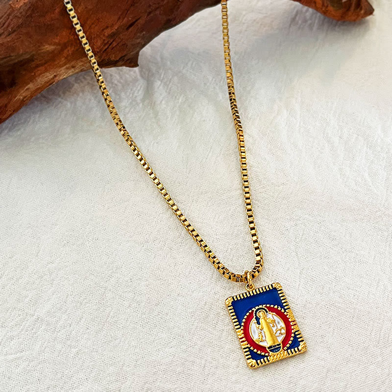 Modern Style Colorful St. Benedict Square Medal Pendant Necklace