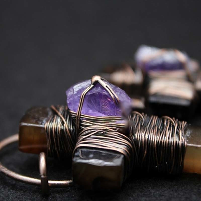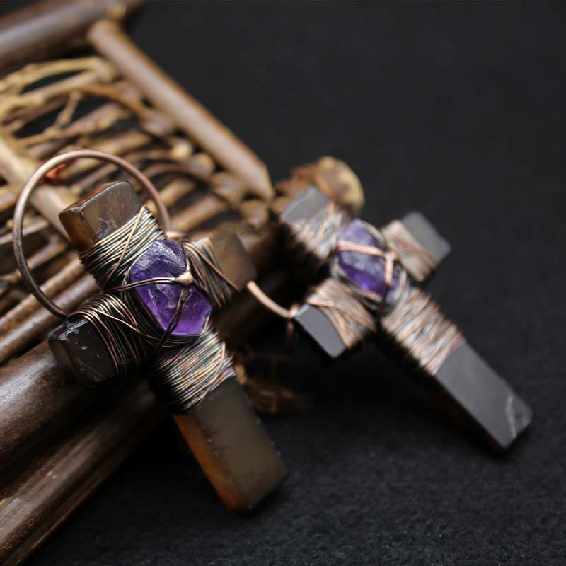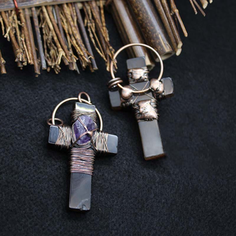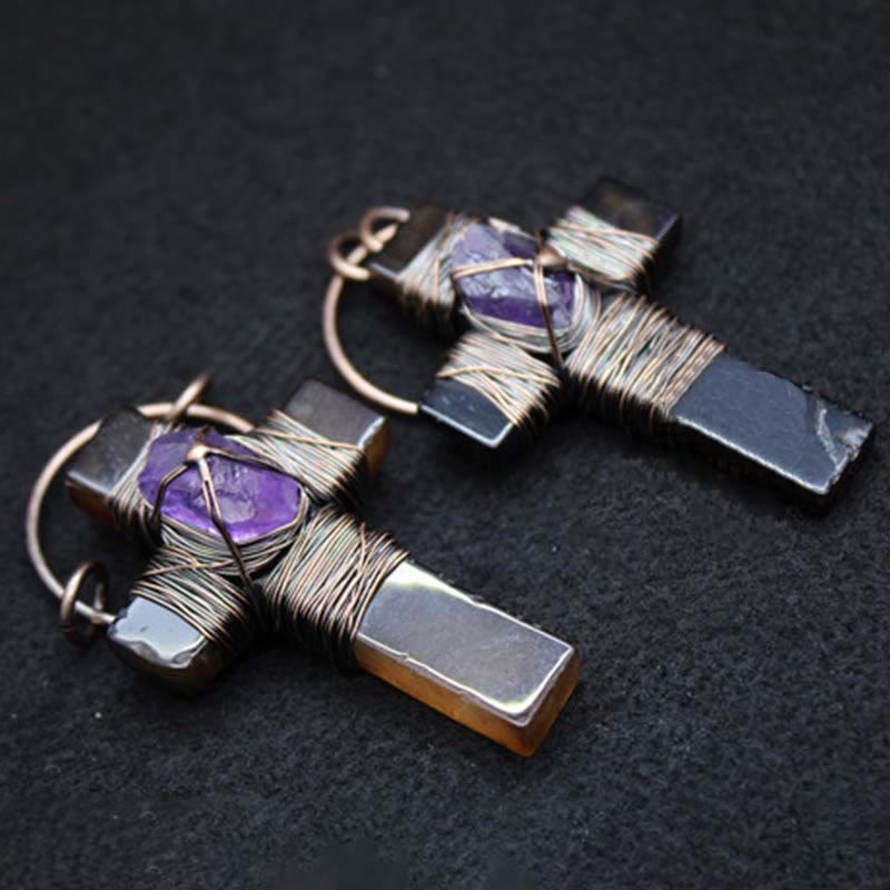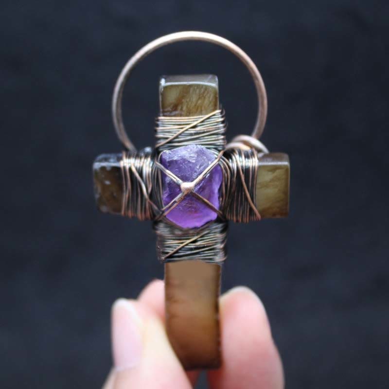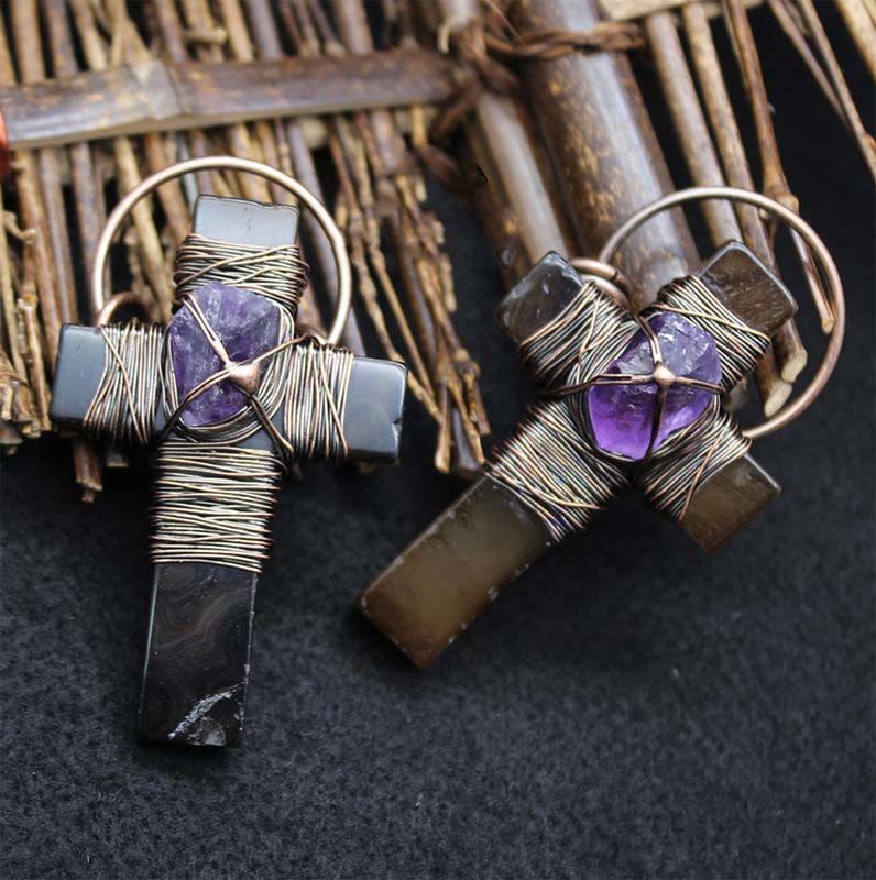 Retro Style Purple Crystal Agate Cross Pendant Necklace