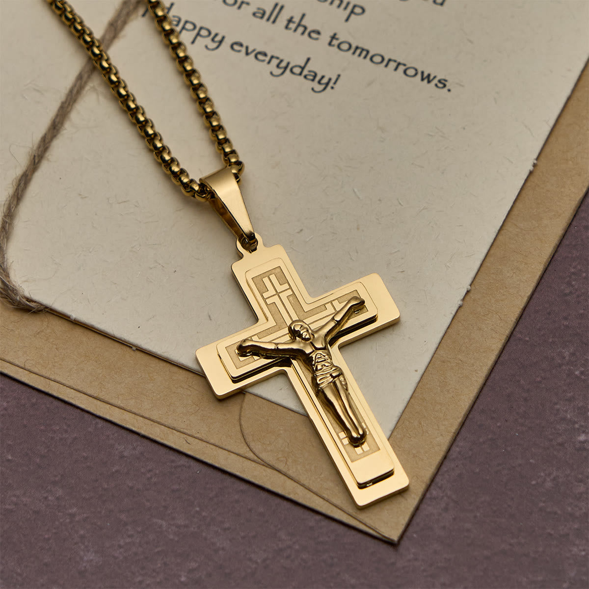 Introducing our Multi - Tone Jesus Crucifix Necklace — a powerful piece blending detailed craftsmanship and religious symbolism to honor devotion and faith. -