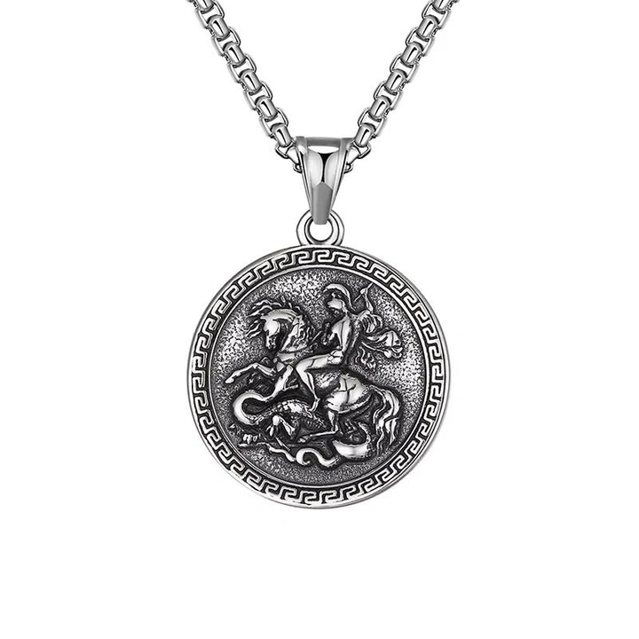 Classic Style St. George Dragon Slayer Pendant Necklace