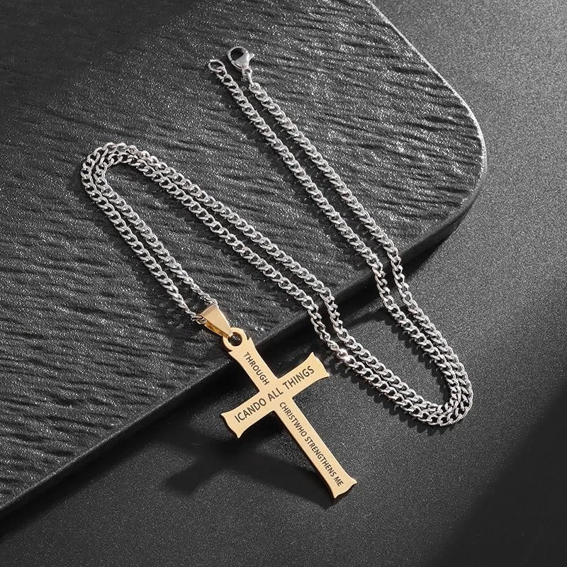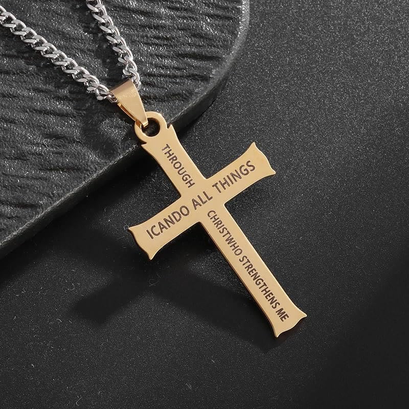 Minimalist Style "I CAN DO ALL THINGS" Icon Cross Faith Pendant Necklace