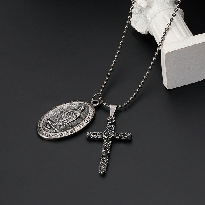 Our Lady of Guadalupe & Cross Exquisite Retro Titanium Necklace