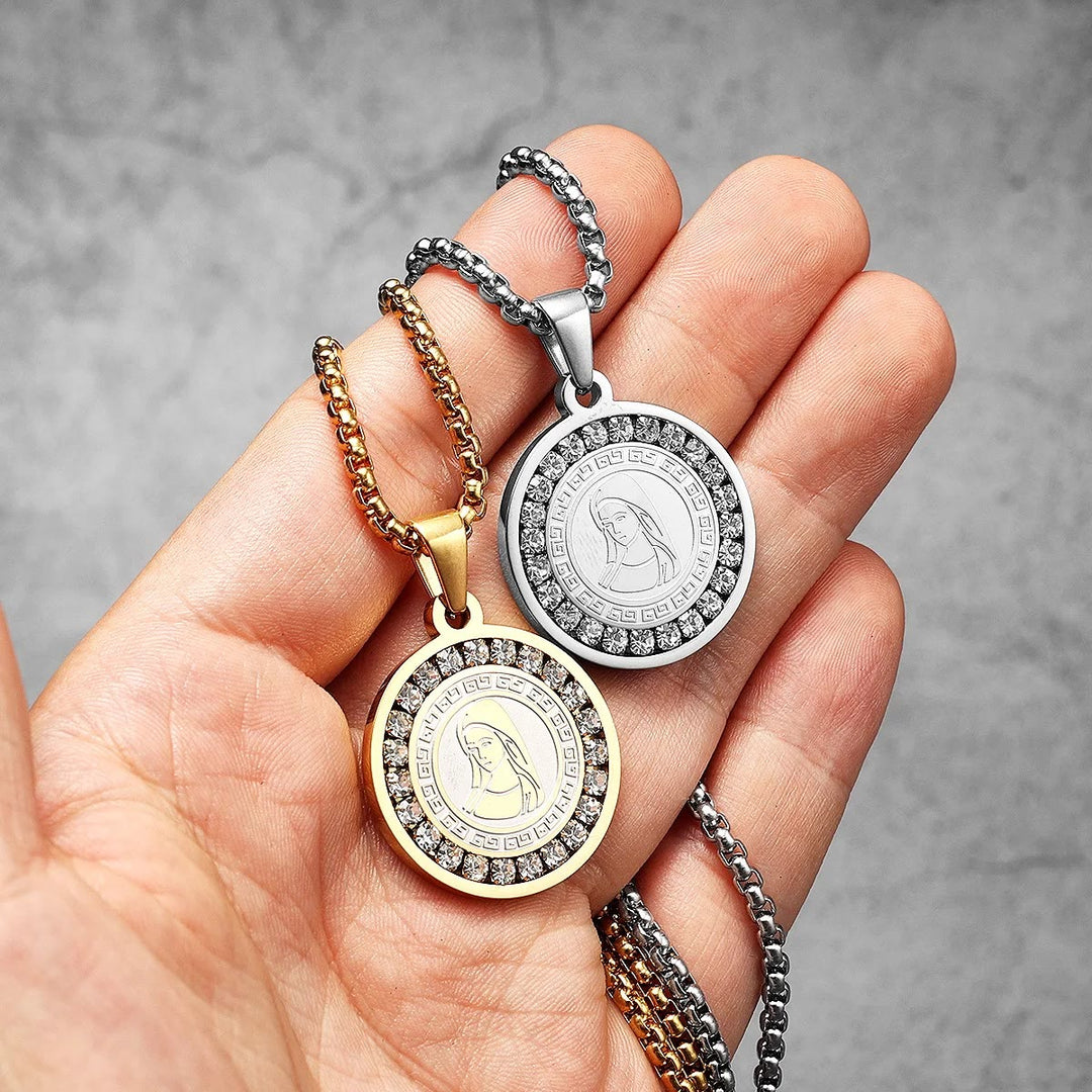 Christianartworkshop Zircon Set Virgin Mary Titanium Pendant Necklace