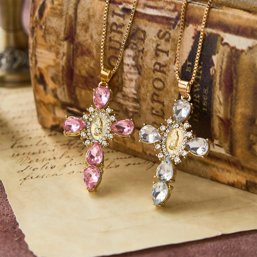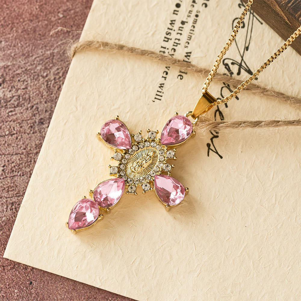 Christianartworkshop Diamond Virgin Mary Cross Necklace - Pink - image 1