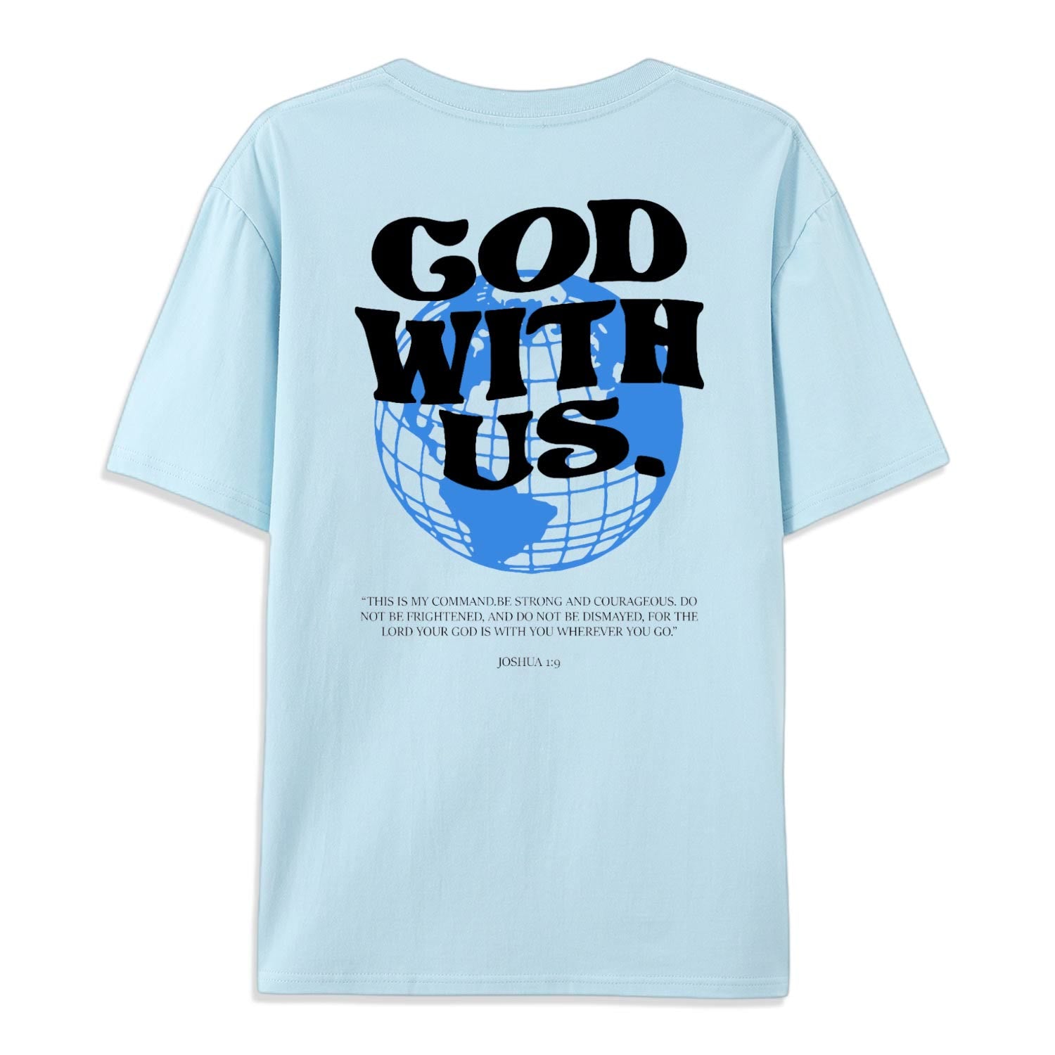 Embrace the strength and courage that comes from divine presence with the 'God With Us' T-shirt. Inspired by the powerful scripture from Joshua 1:9, this tee serves as a constant reminder that you are never alone—no matter where you go, God is with you.