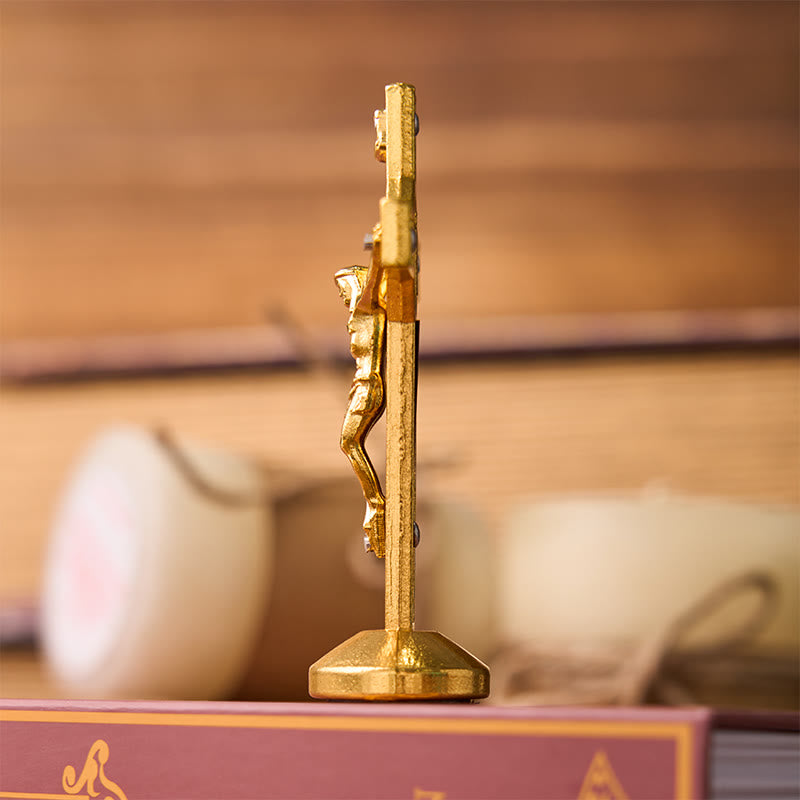 Stable Base: Featuring a stable base, this crucifix is designed for easy display on any tabletop or flat surface. Its balanced design ensures it stays upright, serving as an unwavering reminder of your faith.