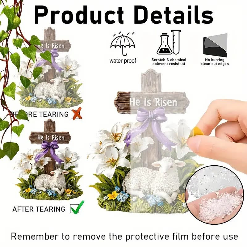 Introducing the "He Is Risen" Cross and Lamb Flat Ornament, a beautifully crafted decoration that embodies the essence of Easter and the resurrection of Jesus Christ. This stunning figurine is perfect for bringing a touch of faith and inspiration to your home, office, or prayer space.