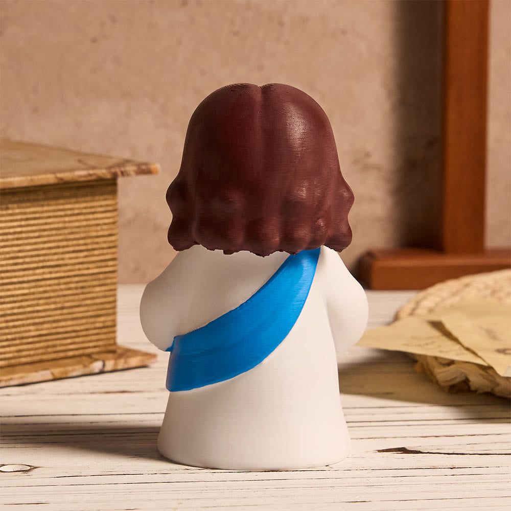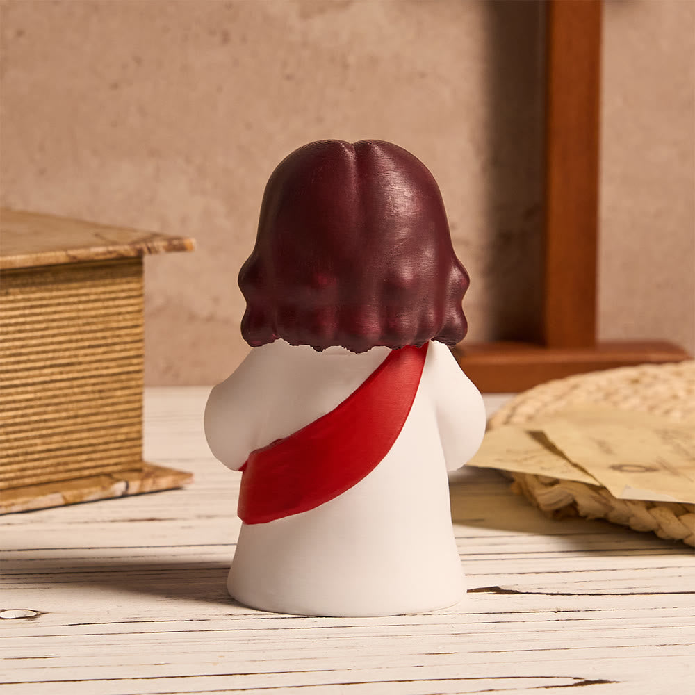 This Jesus desktop ornament (a USB tap light with built-in button battery, colorful sash accents) merges sacred symbolism with playful, functional charm — turning your space into a gentle, luminous reminder of His love.