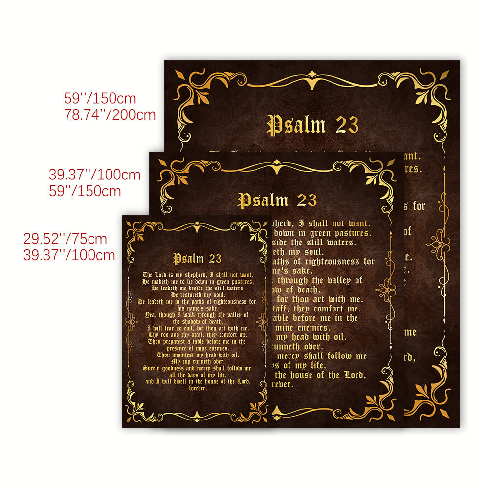 This tapestry weaves the comforting words of Psalm 23 into an elegant design — merging scriptural truth with artistic beauty to create a serene focal point for any space. -