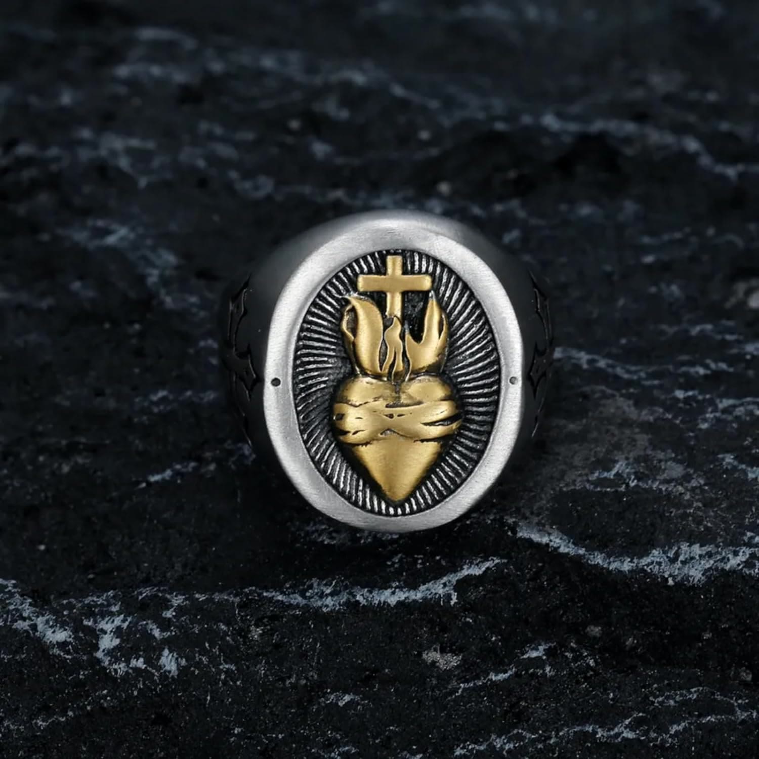 Sacred Heart & Cross Ring, A Token of Devout Faith