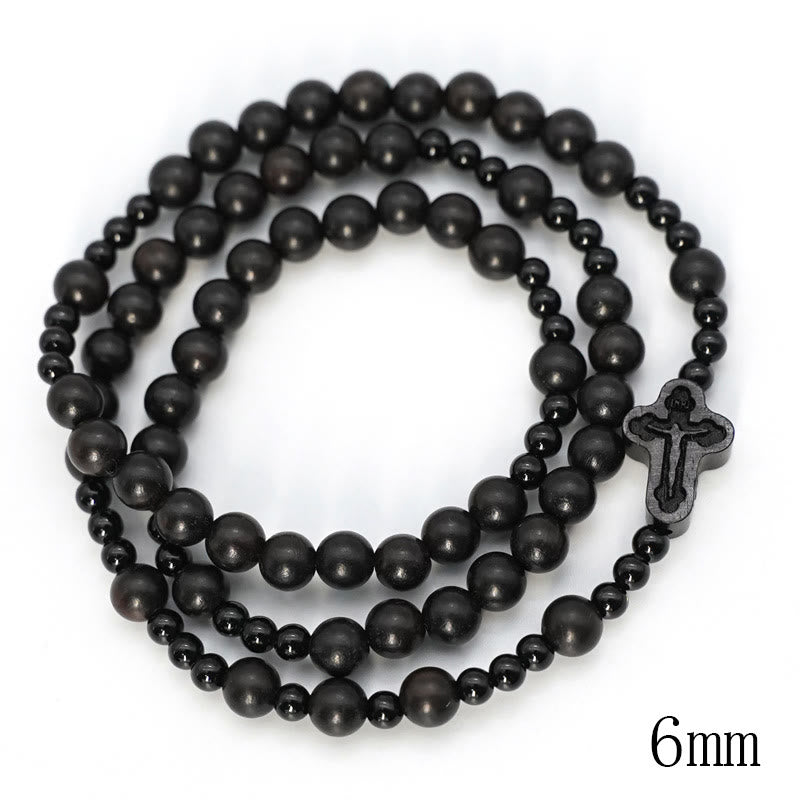 Size Options: Understanding the importance of comfort and preference, the Crucifix Black Sandalwood Rosary is available in two bead sizes. For women, we recommend the 6mm beads for a delicate and refined look. For men, the 8mm beads offer a substantial and bold presence, ensuring a perfect fit for everyone.
