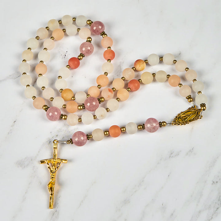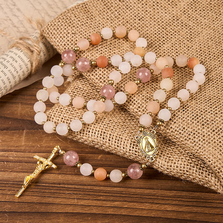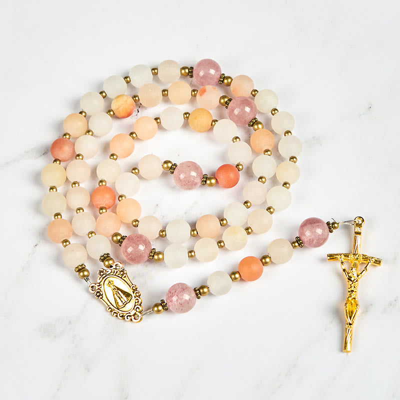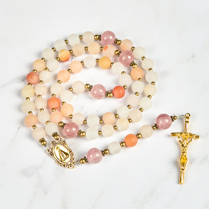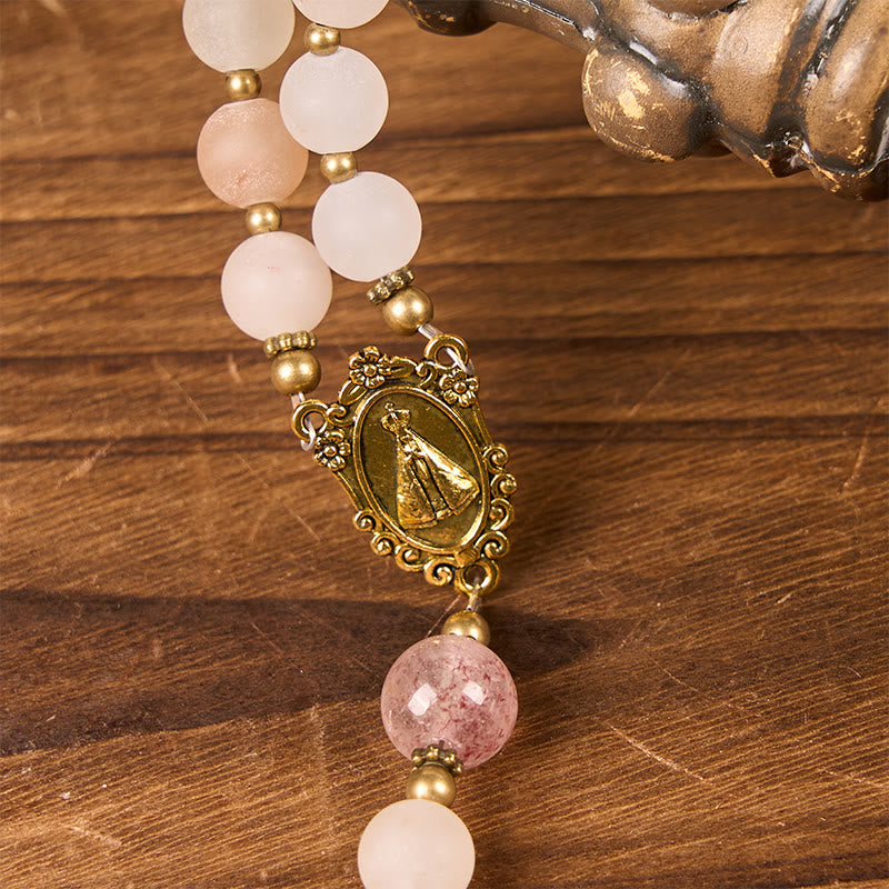 Our Lady & Crucifix of 8mm Pink Aventurine & Strawberry Quartz Rosary