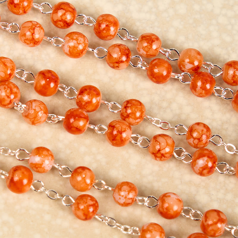 Holy Communion & Crucifix of 8 mm Round Orange Glass Alloy Chain Rosary
