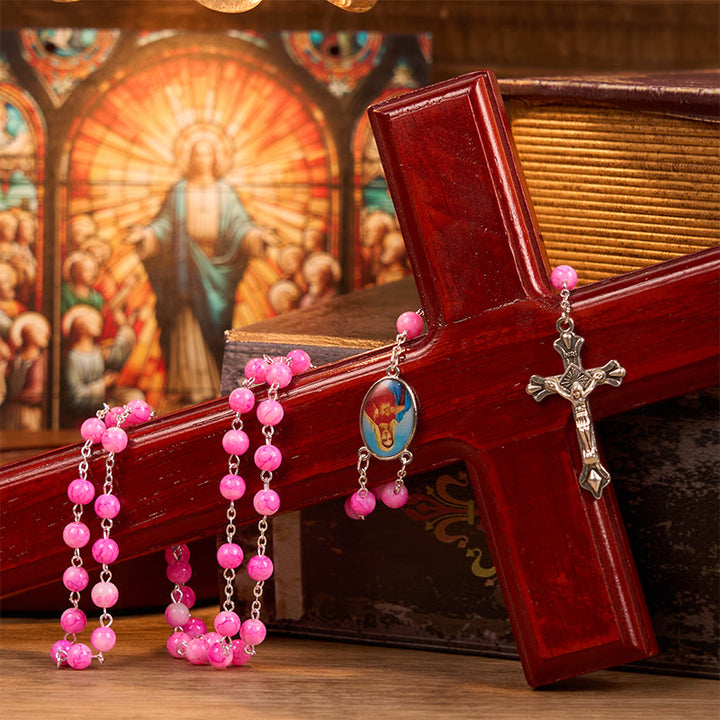 Vivid Pink Beads: The rosary features bright pink beads that symbolize love, compassion, and joy. Each bead is carefully crafted to ensure smoothness and durability, making your prayer time more engaging and uplifting.