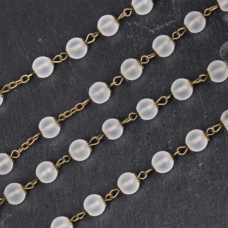 Rose & Crucifix of 8 mm Round Clear Glass Alloy Chain Rosary