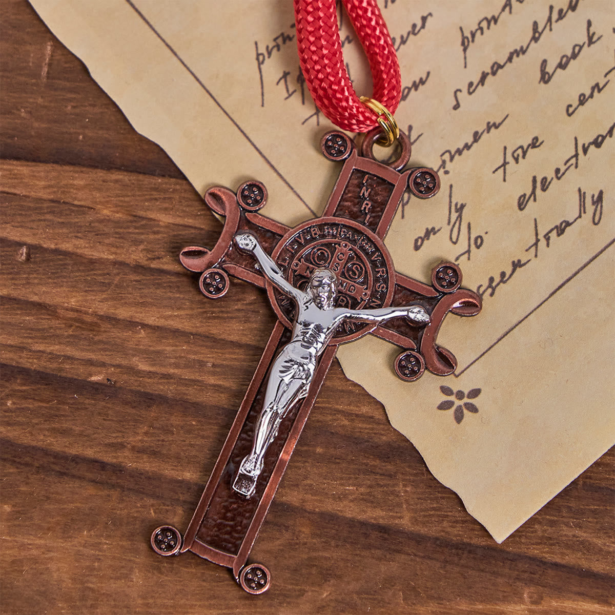 At its center shines the revered St. Benedict medal—long honored as a symbol of spiritual strength and divine protection—inviting courage, peace, and God’s blessing into your daily life. -