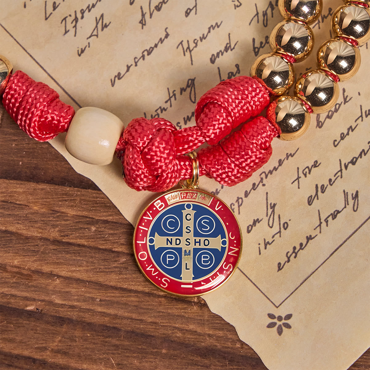 Golden Glory Beads Red Paracord Rosary with St. Benedict for Protection