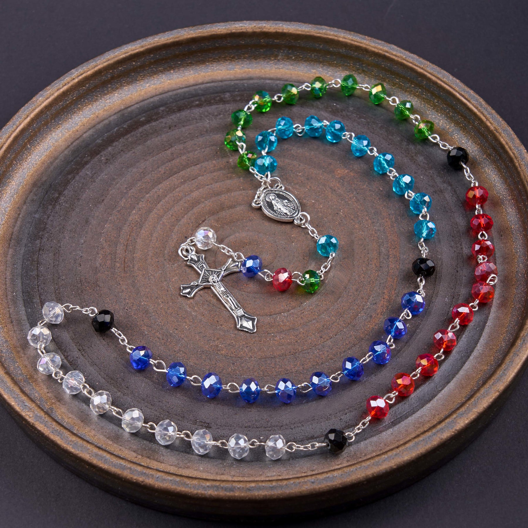 Premium Craftsmanship: Made from high-quality materials, the rosary is designed to be both durable and beautiful. The silver-toned links and components are crafted to enhance the vibrant colors of the crystal beads, ensuring that this rosary will be a cherished heirloom for years to come.